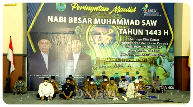 Dalam sambutannya, Bupati HSU H. Abdul Wahid HK mengucapkan rasa syukur karena dapat memperingati maulid Nabi Besar Muhammad SAW walaupun masih dalam keadaan terbatas.