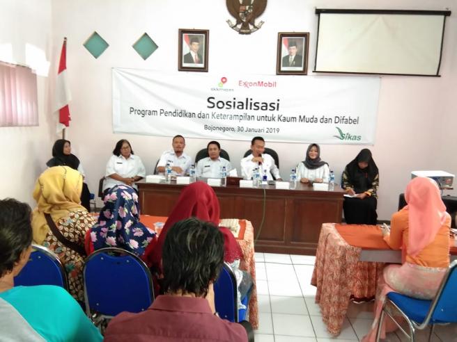 LSM Sikas yang di dukung penuh oleh Exxon mobil Cepu limited (EMCL) nengadakan sosialisasi program pendidikan dan keterampilan untuk kaum muda dan difabel, di Pendopo Kecamatan Balen, Bojonegoro, 30/1.