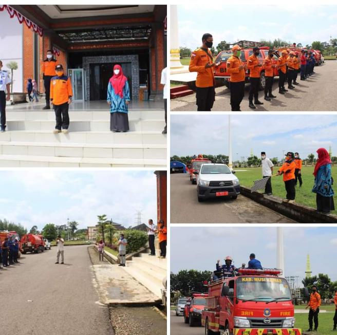 Pemerintah Kabupaten Musi Rawas Provinsi Sumatera Selatan (Mura) melalui Kepala Badan Penanggulangan Bencana Daerah (BPBD) Mura Paisol, S.Sos, melepas melepas Tim Satgas Gugus Tugas Covid-19 dalam penyemprotan Desinfektan untuk Pencegahan Penyebaran Covid-19 di Wilayah Kecamatan Tiang Pumpung Kepungut (TPK) dan Kecamatan Jayaloka. Jumat (15/05/2020) di Halaman Pemkab Mura.