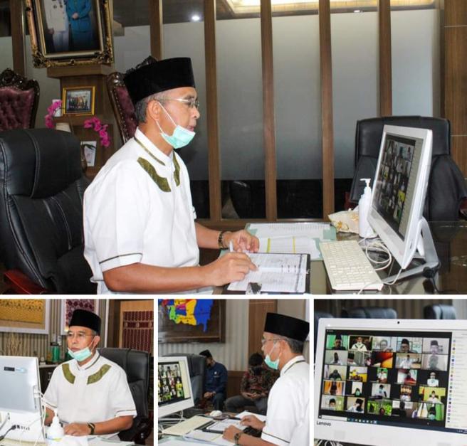Rapat berlangsung melalui Video Conference, Jumat (08/05/2020) di Ruang Kerja Bupati Musi Rawas.