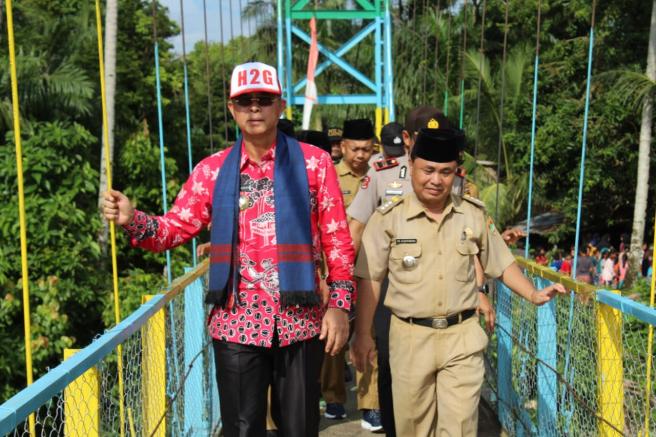 Bupati Musi Rawas H Hendra Gunawan (H2G) meresmikan jembatan gantung di atas Sungai Musi yang menghubungkan antar dusun yang ada di Desa Semeteh Kecamatan Muara Lakitan, Selasa (27/1/2020).