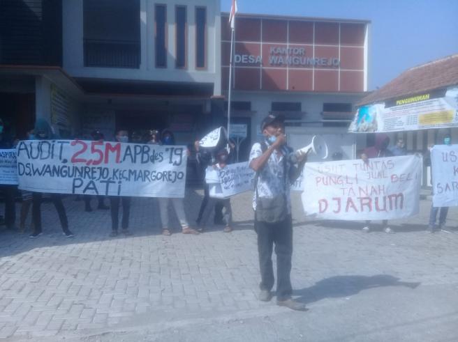 Demo pada sabtu 18 juli 2020 pukul 9.30 pada pekan lalu oleh Warga perumahan Taman Mutiara Persada Desa wangunrejo.kecamatan.Margorejo Kabupaten Pati Jawa Tengah.di picu kepentingan kelompok dan kepentingan pribadi 5 gelintir orang saja yang tak puas terkait informasi pembangunan desa.