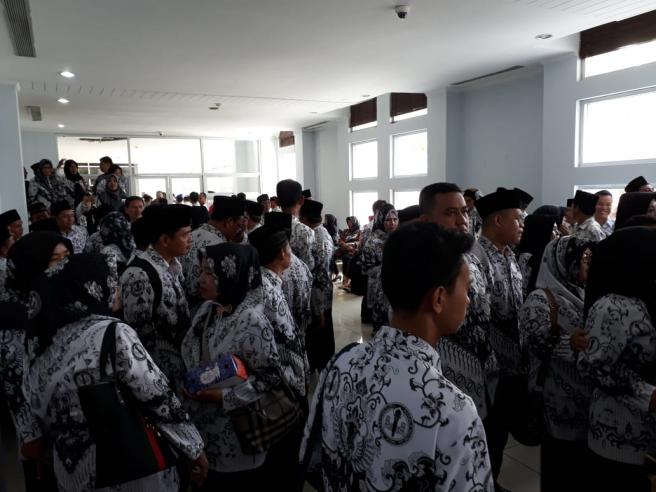 Para Kepala Sekolah dan guru se Kabupaten Muba memperingati Hari Ulang Tahun (HUT) Persatuan Guru Republik Indonesia (PGRI) ke 73 yang di laksanakan OF FROM Pemkab Muba, 30/11.