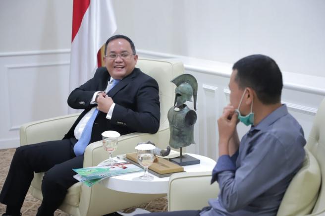 "Kami cukup bangga dengan Bupati Muba, kami pantau betul berapa kali beliau jadi narasumber pada webinar zoom meeting mengenai trik dan strategi Bupati Muba Dr H Dodi Reza dalam penanganan Covid-19 di Kabupaten Muba. Kami apresiasi betapa tinggi kepedulian pak Dodi terhadap wabah ini, berita baik ini cukup tersebar sampai wilayah Sumsel bahkan nasional,"ucap Pengurus Majelis Wilayah KAHMI, Kamil Habibi saat menemui Bupati di Ruang Audiensi Bupati Muba, Rabu (24/6/20).