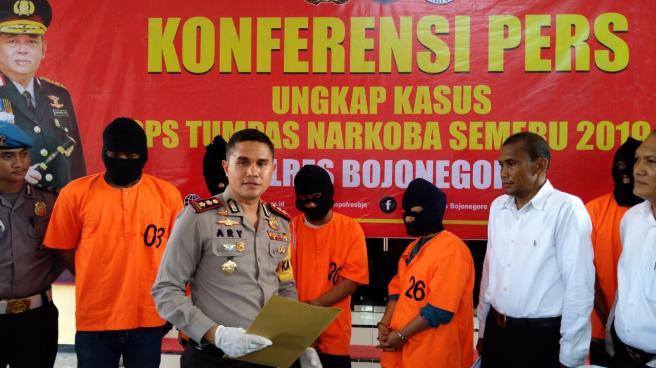 Operasi Tumpas Nakoba Semeru 2019 yang dilakukan jajaran Satuan Reserse Narkoba (Sat Reskoba) Polres Bojonegoro berhasil mengungkap tiga kasus penyalahgunaan narkotika jenis sabu-sabu dengan tersangka sebanyak empat orang.