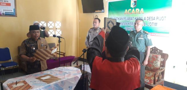 Pelantikan dan Pengambilan Sumpah Pejabat Kepala Desa Pijot, Kecamatan Keruak tahun 2019 di pimpin langsung oleh Camat Keruak Kamaruddin, S.Sos, Kamis, 10/10.