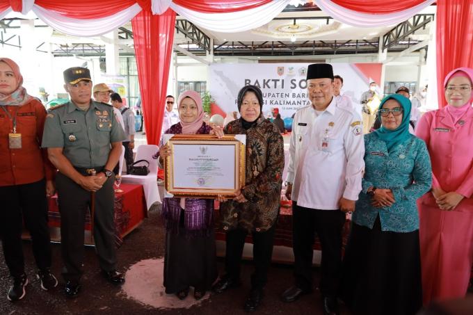 Tabloidskandal.com – Marabahan|| Dalam rangka Bakti Sosial (Baksos) di Barito Kuala, Tri Rismaharini turut didampingi oleh Pj. Bupati Mujiyat dan Sekda Batola Zulkipli Yadi Noor pada Selasa dan Rabu 11-12 Juni Baksos oleh Mensos RI Risma di Barito Kuala dimulai dari Desa Sungai Pitung, Kec. Alalak.