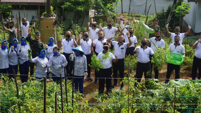 Bersama para Asisten dan didampingi lbu Ketua dan pengurus Korcap IX DJA III Komandan Lantamal (Danlantamal) IX Ambon Laksamana Pertama TNI Budi Purwanto S.T., M.M., Panen Sayur-mayur hasil kebun Ketahanan Pangan di area Mes Bintara Lantamal IX. Jum'at (12/06 2020).