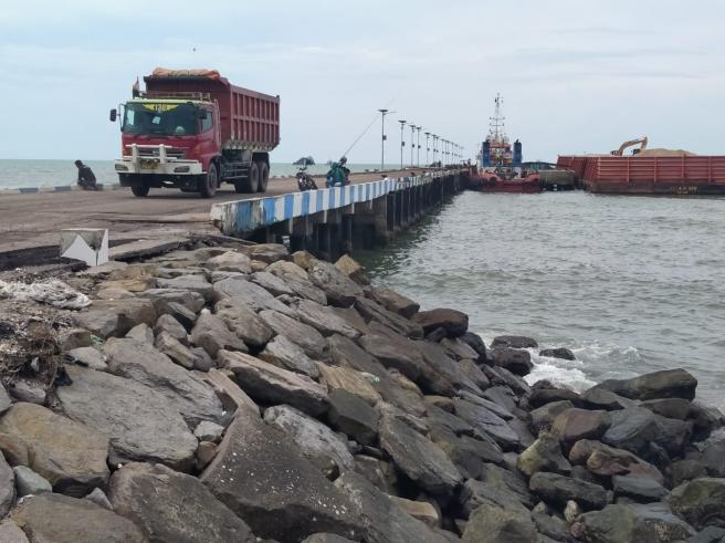 Pantauan Skandal kemarin, di area dermaga satu terparkir beberapa truk. Selain itu juga terlihat aktifitas bongkar muat tongkang.