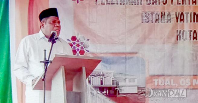 Wali Kota Tual Adam dalam sambutanya mengungkapkan bahwa dirinya sangat gembira karena istana yatim ulfa yang baru dibangun ini juga salah satu istana yang baru pertama kali di Maluku dan harapannya agar menjadi tempat Aman dan Nyaman untuk anak yatim di kota Tual.