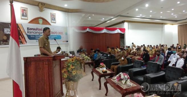 Wakil Walikota Tual Usman Tamnge SE pagi tadi membuka secara resmi kegiatan Forum Konsultasi Publik Penyusunan Rancangan Awal Rencana Kerja Pemerintah Daerah (RKPD) Kota Tual tahun 2022 bertempat di Aula Kantor Wali Kota Tual Senin, (22/2/2021).