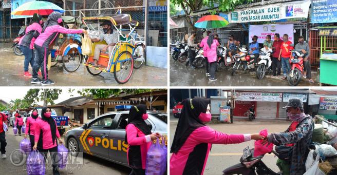 Kepedulian terhadap warga masyarakat yang terdampak akibat Covid-19, Istri-Istri Polisi yang bernaung dibawah Persatuan Bhayangkari Hulu Sungai Utara (HSU) dan Yayasan Kemala Bhayangkari Peduli membagikan nasi kotak kepada masyarakat yang melintas di sekitar Pasar ikan banua lima dan perempatan lampu merah palampitan. Jumat (19/3/2021).