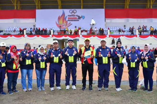 H Gunawan, Bupati Musi Rawas, menghadiri Olahraga Provinsi (Porprov) XII Sumsel tahun 2019 di Stadion Talang Jimar Kota Prabumulih, Sabtu (16/11).