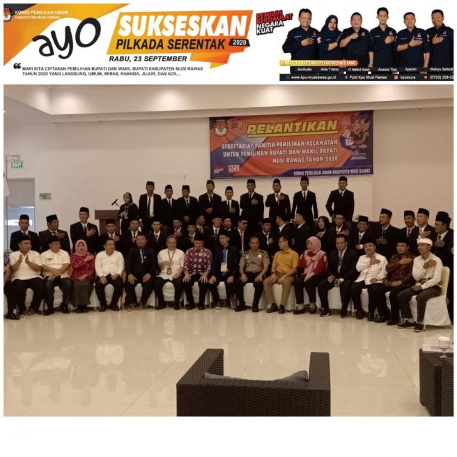 Komisi Pemilihan Umum (KPU) Kabupaten Musi Rawas Provinsi Sumatera Selatan melantik 42 aparat kecamatan sebagai tenaga sekretariat panitia pemilihan kecamatan (PPK) Jum'at, 20 maret 2020. Anggota sekretariat PPK ditujukan untuk mempermudah tugas dan fungsi ppk dalam bidang kesekretariatan.