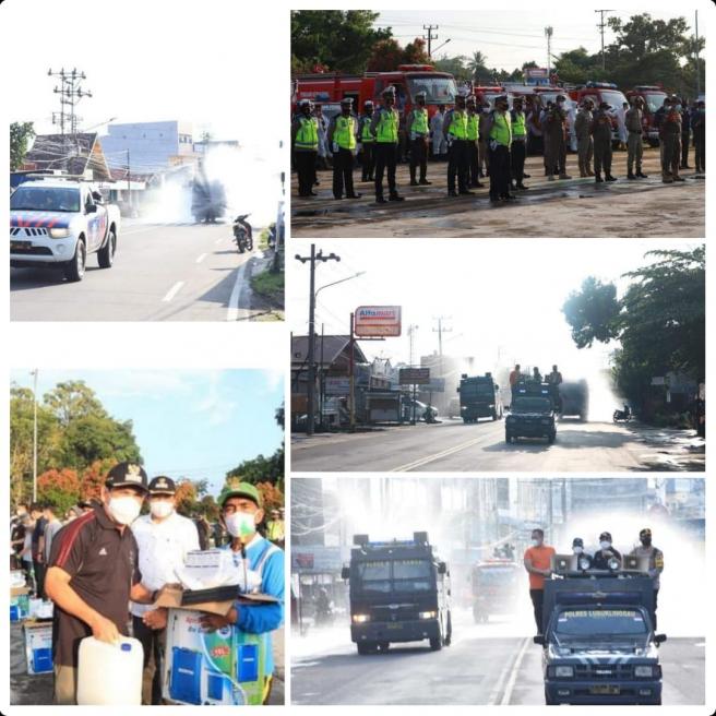 Pemerintah Kota Lubuklinggau Provinsi Sumatera selatan, ASN bersama TNI dan Polri kembali dibanjiri penyemprotan disinfektan di wilayah Kota Lubuklinggau sebagai upaya memutus mata rantai penyebaran Covid-19. Kegiatan penyemprotan dikomandoi langsung Wali Kota Lubuklinggau, H SN Prana Putra Sohe di eks Kompi Kota Lubuklinggau, Minggu (9/5).