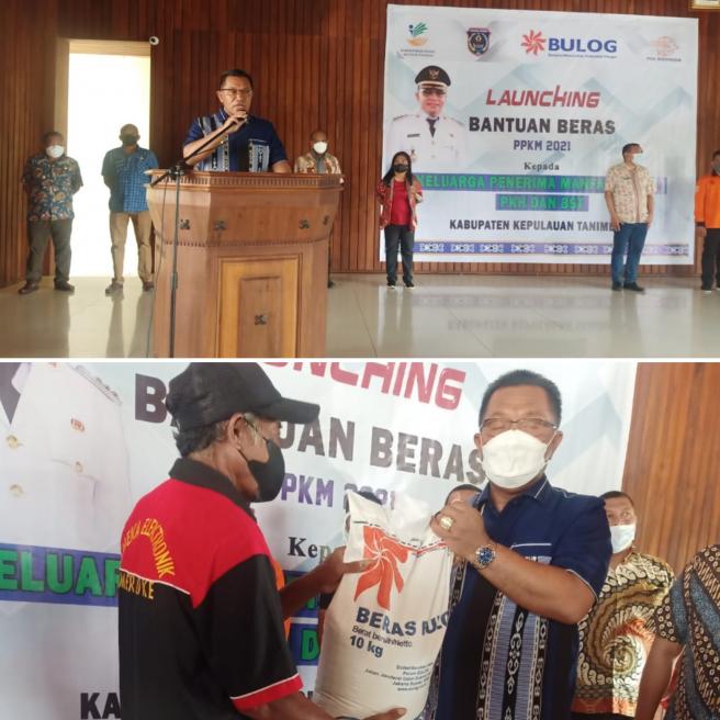 Penyaluran bantuan PKH dan BST oleh Bupati Kepulauan Tanimbar bapak Petrus Fatlolon SH MH secara simbolis berupa 10 kg beras kepada 7218 penerima dari desa Sifnana, Lauran dan Kabyarat.