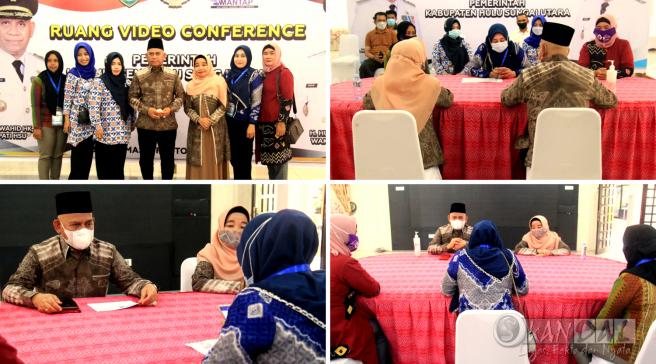 Tetap mematuhi Protokol Kesehatan Bupati HSU menerima kader pendataan keluarga di kediamannya, dengan menampilkan kartu keluarga (KK) dan kartu tanda penduduk(KTP) wahid bersama anisah menjawab pertanyaan dari kader keluarga. Rabu, 26/05/2021.