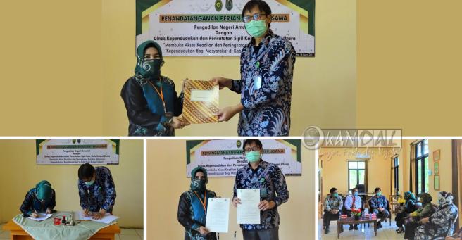 Kegiatan Penandatanganan tersebut di gelar pada Kamis 18 Maret 2021 di kantor Pengadilan Negeri Amuntai dengan dihadiri oleh Ketua Pengadilan Negeri Amuntai Budi Hermanto, SH, MH, beserta jajaran Hakim dan Plt. Kepala Dinas Kependudukan dan Pencatatan Sipil, Hj. Ida Rimaliana, SE, MAP, beserta jajarannya.