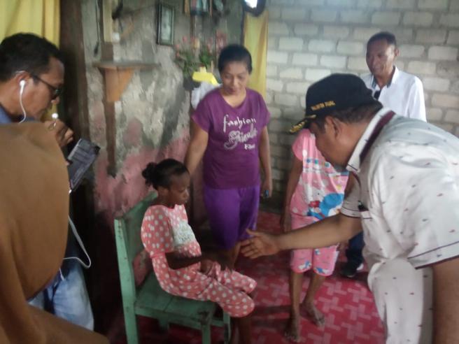 Walikota Tual Adam Rahayaan S,Ag.M.Si mengunjungi salah satu warga Yealer, Maria Sonya Wearbitu, 16 tahun, yang disebut-sebut sebagai penderita gizi buruk. Walikota didampingi oleh Kadis Sosial dan Kadis Kesehatan Tual, 30/11.