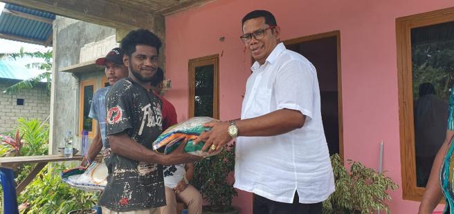 Wakil Ketua DPRD Kab Malra, Albert Efruan S.AP dan istrinya, Meilan M. Efruan S, mendistribusikan 546 sembako ke 4 (empat) kecamatan, 28/5.
