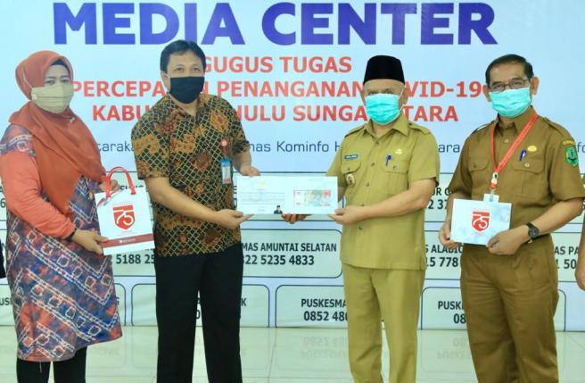 Dalam kunjungannya Tim Bank Indonesia Kalimantan Selatan menyerahkan uang pecahan nominal 75.000 seri Kemerdekaan Republik Indonesia ke 75.