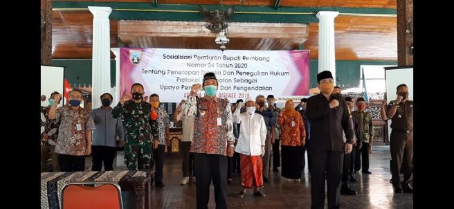 Sementara itu Pj Sekda Rembang, Achmad Mualif menyampaikan untuk pemberian sanksi bagi pelanggar protokol kesehatan tidak didenda dengan uang tetapi didenda dengan pembinaan sosial, pembinaan fisik atau penerapan sanksi paksaan.