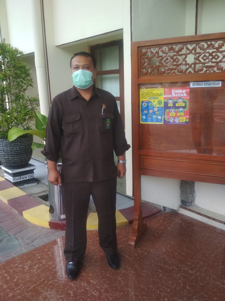 Pihaknya menambahkan bahwa untuk ruang pengunjung sidang dibatasi jarak 1meter dan disediakan cairan steiliser untuk cuci tangan untuk maskernya masih terbatas karena keterbatasan.
