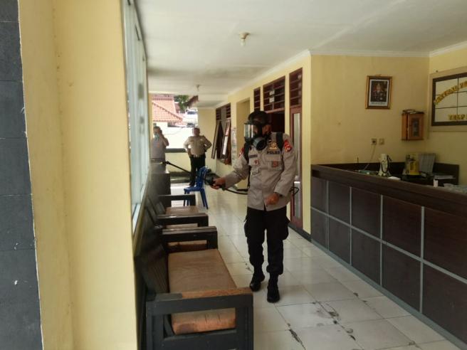 "Penyemprotan ini sebagai langkah atisipasi dini guna mencegah penularan dan penyebaran virus Covid 19. Markas Kepolisian baik Polsek hingga Polres, bahkan Polda merupakan institusi pelayanan publik untuk masyarakat sehingga setiap hari selalu dipadati pengunjung dari berbagai elemen", jelasnya, Kamis 19/3.