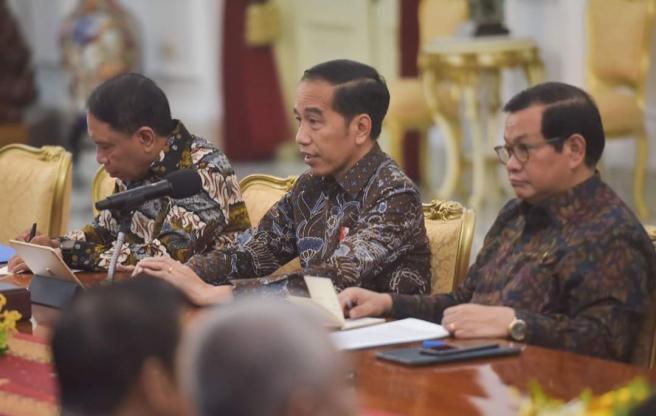 Presiden Jokowi didampingi Menpora dan Seskab menerima pengurus PSSI Periode 2019-2023, di Istana Merdeka, Jakarta, Senin (16/12) pagi.