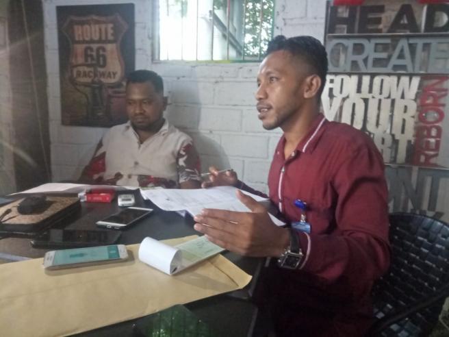 Bendahara Ohoi Tutrean kec kei besar selatan kab Malra. K.E.Refra saaat jumpa pers beberapa awak media di sala satu kafe di kota Tual tepat hari kami,pikul 17.25 wit.