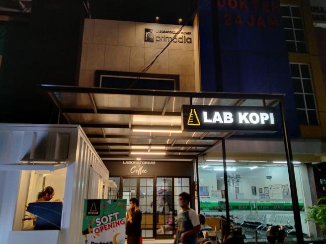 Lihatlah Labkopi, sebuah paduan cafe antara kesehatan dan menyeruput aroma kopi. Cafe ini baru berdiri di kawasan Johar Baru - depan Gedung UMKM, tepatnya di Jalan Percetakan Negara II No 21-22, Jakarta Pusat