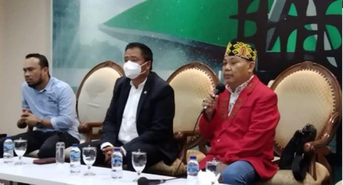 Keterangan Pers Anggota DPR Lasarus dan Sekjen Majelis Adat Dayak Nasional Yakobus Kumis (foto istimewa)