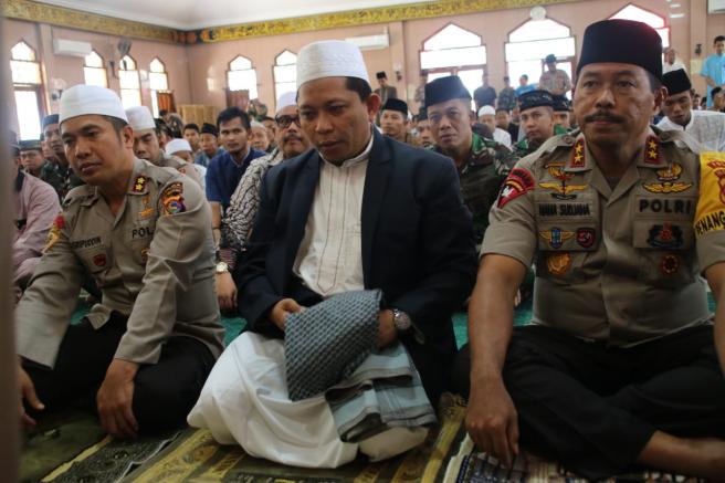 Polda NTB dan Jajaran TNI-Polri dan FKPD Provinsi NTB menggelar tasyakuran dan do'a bersama dalam rangka suksesnya pelaksanaan pengamanan pemilu tahun 2019 hingga suksesnya pelantikan Presiden dan Wakil Presiden RI periode 2010-2024 di masjid Baitussalam Polda NTB ,Jumat 25/10/2019.