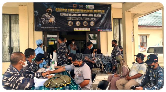 TNI Angkatan Laut Banjarmasin tetap komitmen dan akan terus kebut pemerataan Vaksinasi secara massal agar tercapai hasil yang maksimal, harapannya segera memutus mata rantai Covid-19 secara totalitas, agar musim Pandemi ini cepat selesai, sehingga masyarakat dapat beraktivitas dan beradaptasi dengan normal., jelas Danlanal
