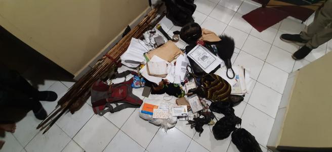 Adapun barang bukti yang berhasil diamankan oleh pasukan TNI Polri, berada dalam sebuah Honai yang dimiliki Lesmin Waker, antara lain : 1 Unit Helm Militer, Dokumen, Berbagai Senjata Tajam, Panah, HP.