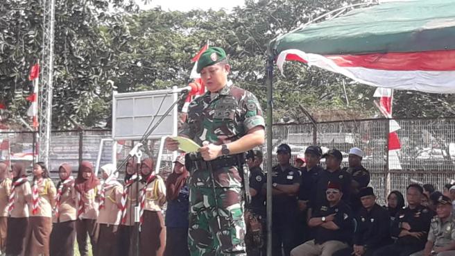 Komandan Korem 052/Wkr (Danrem) Kolonel Kav Agustinus Purboyo S.I.P, pimpin iupacara serah terima simbol Peleton Beranting Yudha Wastu Pramuka Jaya, di Stasiun Rambu Penerbangan, Pasar Kemis Tangerang Banten 16/12