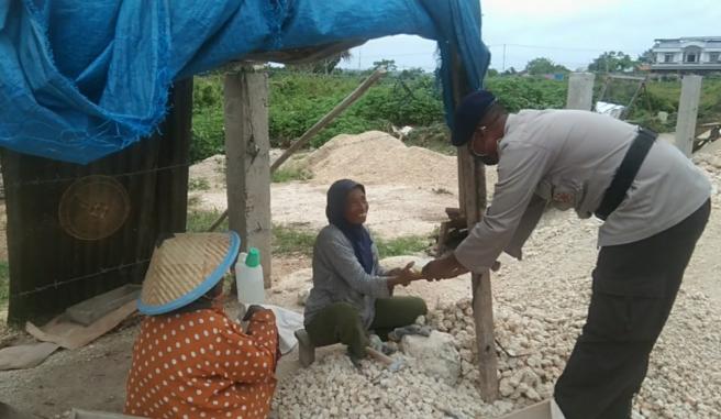 Brigpol Obet menyambangi masyarakat yang bekerja sebagai pemecah batu kerikil pada Jalan Tete Panncing Kota Tual. untuk berbagi sarapan pagi kepada mereka, terkhusus yang kesehariannya mendapat penghasilan dari penjulan batu kerikil.