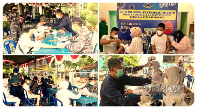 Dengan terapkan Protokol Kesehatan yang ketat dan sikap yang humanis, 15 Tenaga Kesehatan (Nakes) dari Lanal Banjarmasin dan Dinkes Kota Banjarmasin dikerahkan sebagai Tim Vaksinator untuk melayani Vaksinasi warga Pesisir dari Kec. Banjarmasin Tengah, Banjarmasin Selatan dan menyasar para pelajar/mahasiswa.