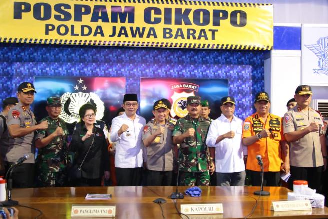Kegiatan diawali dengan meninjau Posko Cikopo, rombongan disambut oleh Gubernur Jawa Barat Ridwan Kamil dan Kapolda Jabar Irjen Rudy Sufahriady.