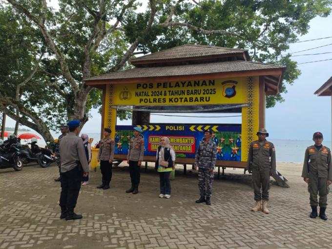 Tabloidskandal.com - Kotabaru || Polres Kotabaru menggelar pengamanan di Pos Obyek Wisata Pantai Gedambaan untuk memastikan keamanan dan kenyamanan masyarakat selama perayaan Natal 2024 dan Tahun Baru 2025, Sabtu (28/12/2024).
