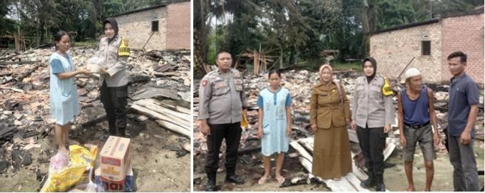 Dijelaskan Kapolsek Nastain, pihaknya berinisiatif memberikan bantuan sosial berupa sembako kepada dua warga yang rumahnya terbakar.