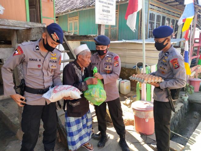 Kegiatan bhakti sosial yang dipimpin lansung oleh Komandan Kompi 2 Iptu Sulaiman H.Husain membagikan 15 paket sembako kepada warga yang sudah lanjut usia .