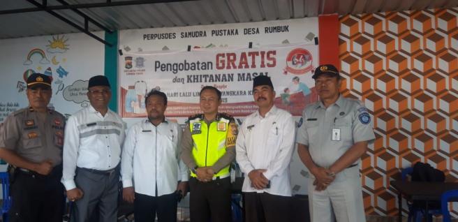 Dalam Rangka Hari Lalu Lintas Bhayangkara ke - 64 tahun 2019, Sat Lantas Polres Lombok Timur gelar Pengobatan Gratis dan Khitanan Masal, pelayanan Samsat, pelayanan pembuatan SIM keliling di Desa Rumbuk, Kecamaran Sakra, Kabupaten Lombok Timur Rabu, 18 September 2019.