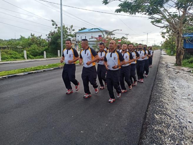 Agar tetap sehat menjalankan tugas dimasa pandemi, personil Batalyon C pelopor aktif melakukan kegiatan olahraga pagi bersama.